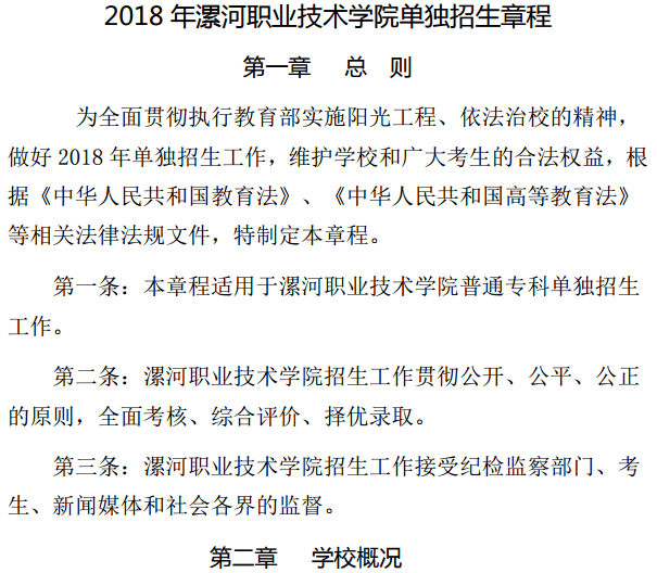 漯河职业技术学院2018年单招简章